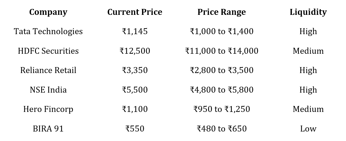 Here is a quick look at how prices vary across the unlisted space in popular shares like BIRA 91,Hero Fincorp etc:
